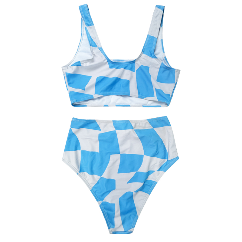 Blå och vit geometrisk väst fast färgbrett band split baddräkt