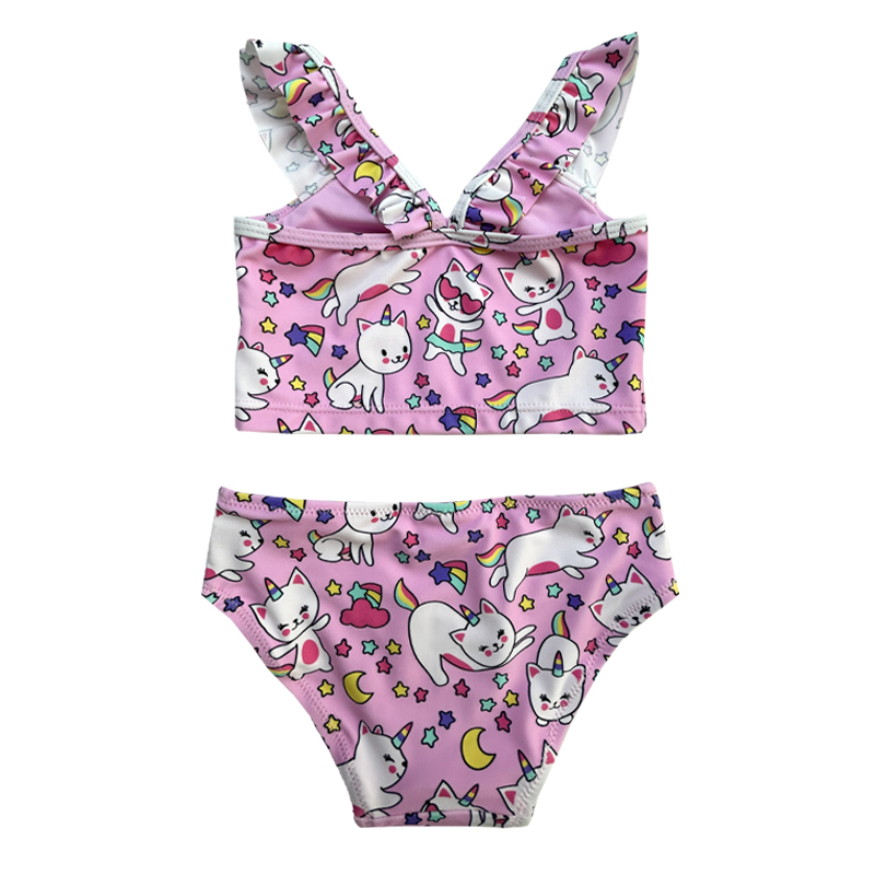 *blommigt tryck, enhörningstecknad film, höga elastiska, axelremmar med veckade kanter, två stycken.