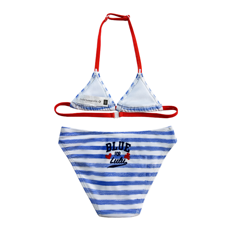 Halterneck randig brevtryck färg matchande barns baddräkt