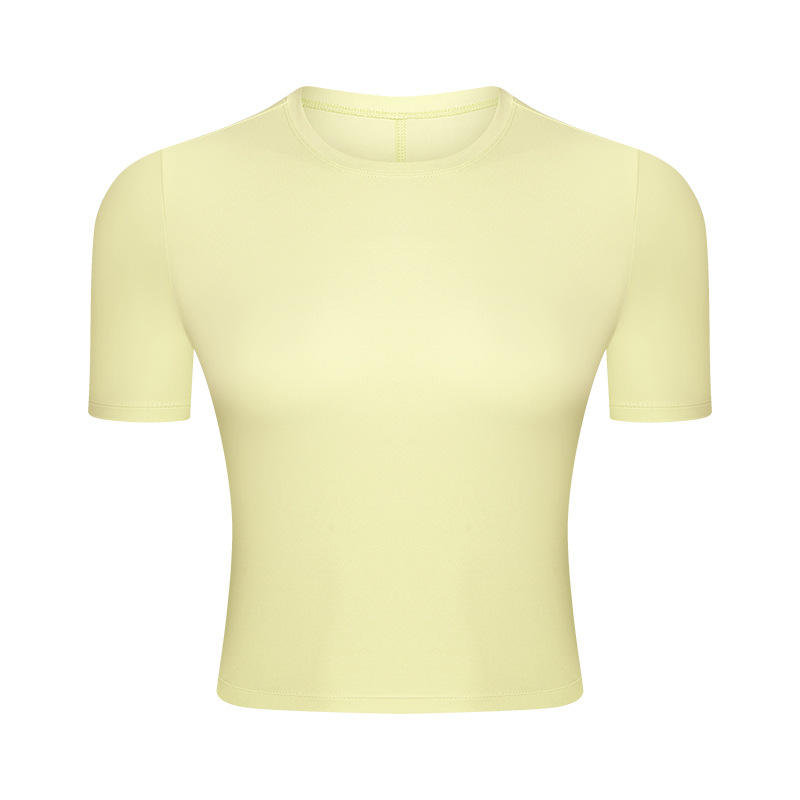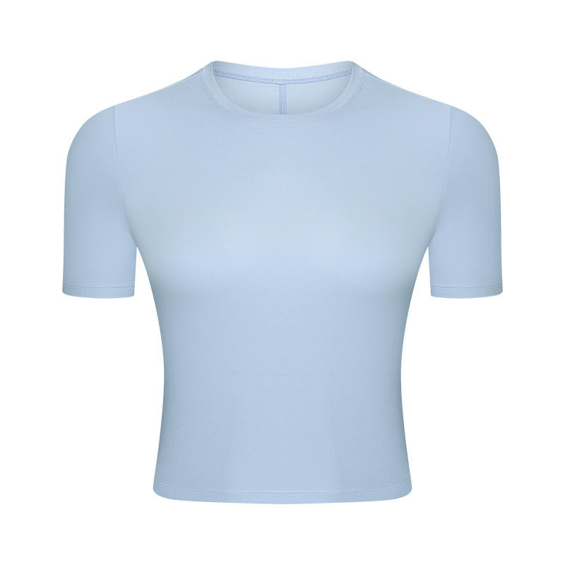 SC10267 andningsbar yogaborta topp gym fitness tight t-shirt som kör rundhals smal monterad kortärmad t-shirt