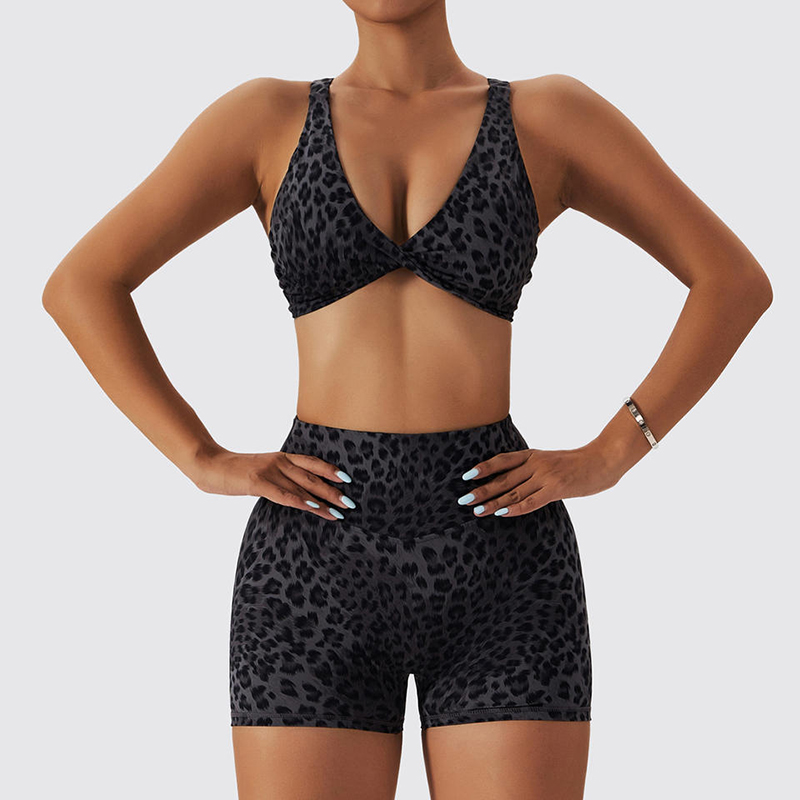 SC1066 Kvinnor Yoga Set Leopard Print Sport BH och Sport Shorts Runit Yoga Set Fitness Woman 2024
