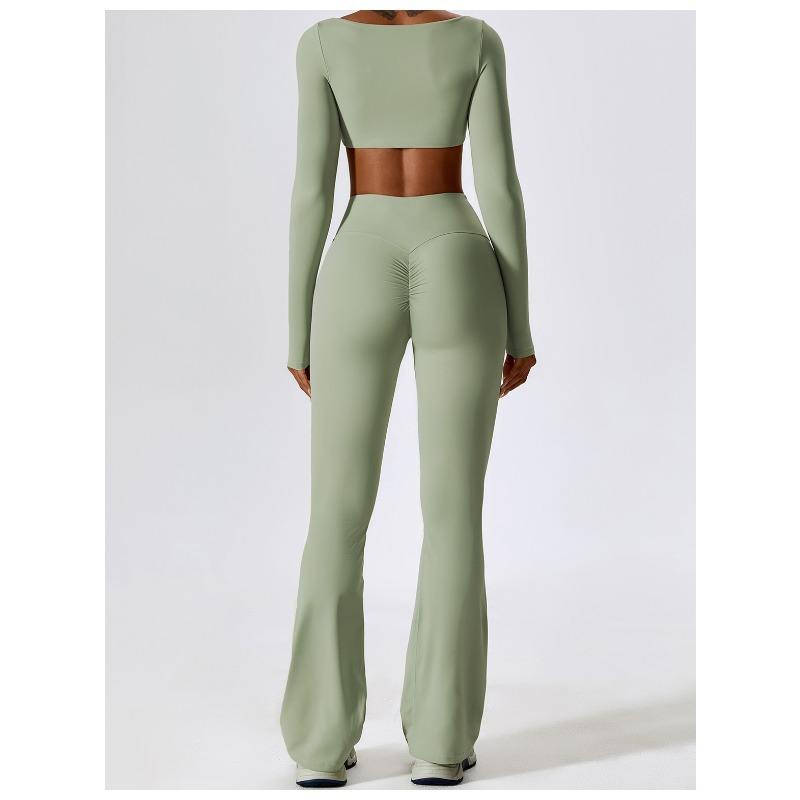 SC9272 YOGA SETS Fitness Women 2023 Långärmad sportbh Gym Sport Pants Two Piece Flare Leggings Wear Set